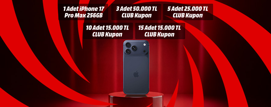 Çekiliş sonucunda; 1 kişi Apple iPhone 17 Pro Max 256 GB Cep Telefonu, 3 kişi 50.000 TL değerinde MediaMarkt CLUB Hediye Kuponu, 5 kişi 25.000 TL değerinde MediaMarkt CLUB Hediye Kuponu, 10 kişi 15.000 TL değerinde MediaMarkt CLUB Hediye Kuponu, 15 kişi 10.000 TL değerinde MediaMarkt CLUB Hediye Kuponu ikramiyesi kazanacaktır.